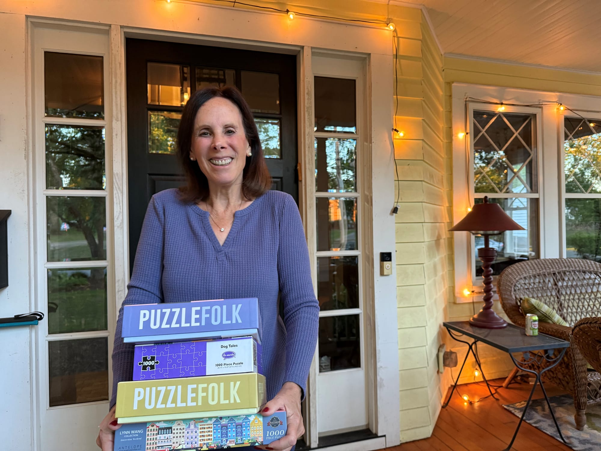 Her current system took shape during the early days of the pandemic. With storage closets full of finished puzzles, Nena began completing them and realized she didn’t want to do most twice. Where better to share them than with her hometown? From that point on she decided to give away every puzzle she finishes.